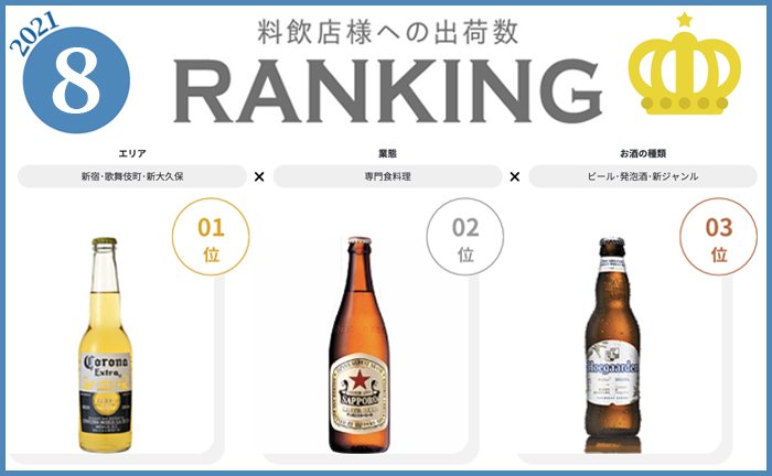 2021年8月度の飲食店への出荷数ランキング発表!業態別、カテゴリー別でどんな商品がよく売れているのか一目でわかります!メニュー作りのヒントにも◎