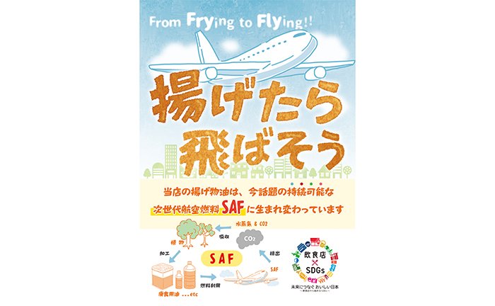 食用油回収を依頼いただいている飲食店様へ、SDGsの活動をしている事を店内でアピールできるポスターを無料配布します。一緒に環境にやさしい取り組み、SDGsに取り組みませんか?