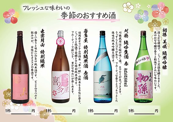 お客様の「もう一杯飲みたい!」「また来たい!」を促すためにも、ドリンクメニューの定期的な変更をおすすめしています。