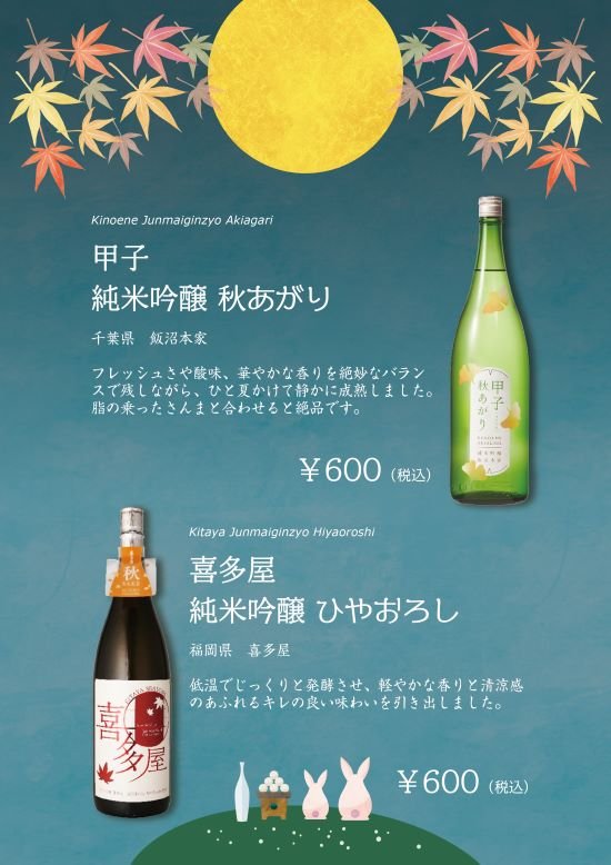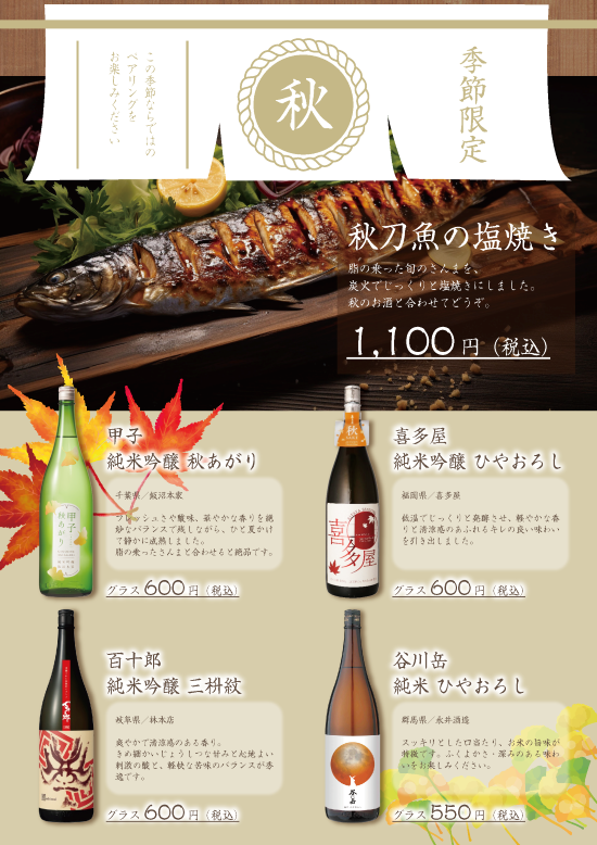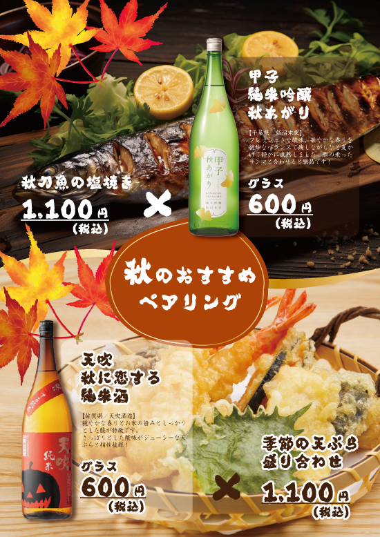 おすすめのフードペアリングもご紹介しているので、ぜひお店のお料理に合う秋酒を探してみてください。